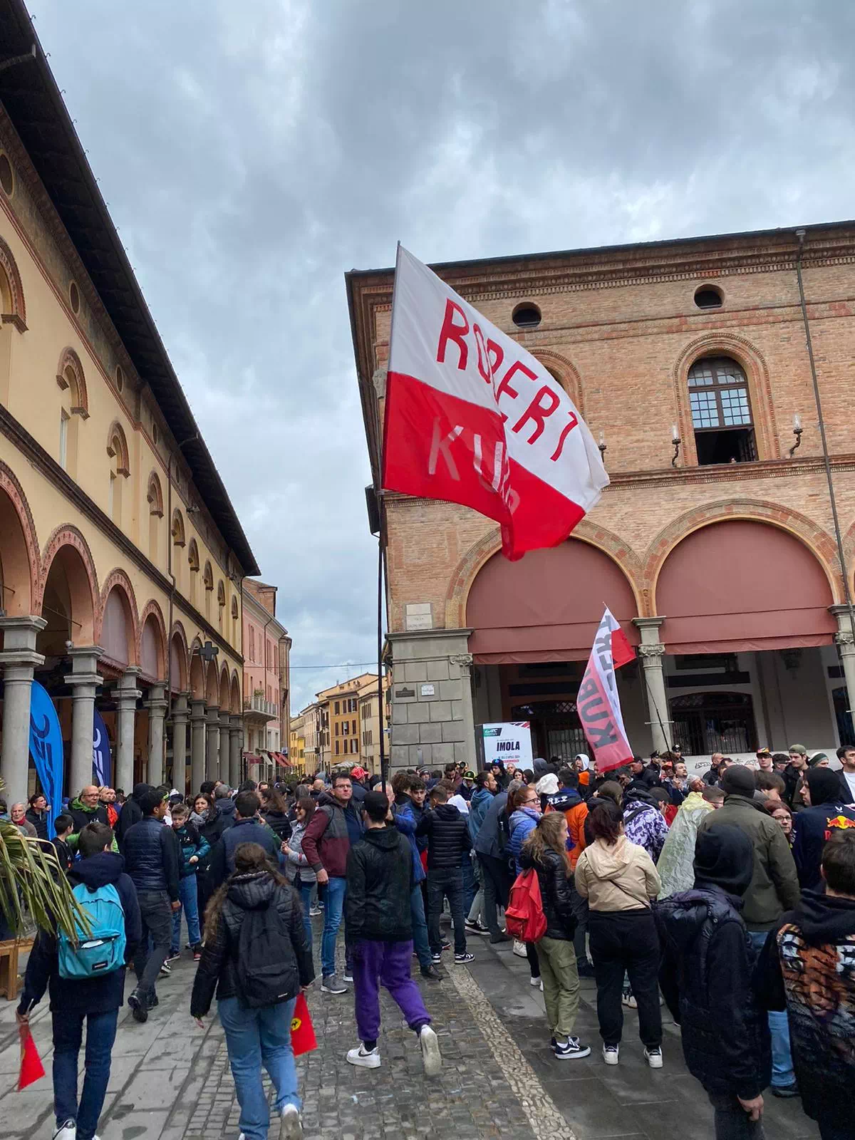 Polacy. Ogromnym zaskoczeniem było to jak wielu polskich kibiców znalazło się na Imoli. Co chwilę spotykaliśmy nasze narodowe barwy. Co chwilę słyszeliśmy okrzyki “O! nasi!, Robert Kubica, Robert Kubica!” Fascynujące jest to, że gdy spotykaliśmy polskich kibiców i widzieliśmy ich po raz pierwszy, mieliśmy wrażenie, że znamy się od lat. Radość ze wspólnego kibicowania Robertowi towarzyszyła nam przez cały weekend. Poznaliśmy wielu Polaków, którzy przyjechali na Imolę z różnych zakątków świata, by kibicować Robertowi Kubicy. Znalazł się tam również szczególny kibic, Mateusz Chełminiak. Mateusz, wieloletni fan Roberta porusza się specjalnym bolidem i nie było to prostą sprawą na torze Imola. Bariery, które pojawiają się na Imoli, są dla gości z trudnościami w poruszaniu się niemałe i tu uwaga do organizatorów, żeby postarali się to zmienić i ułatwić dostępność dla wszystkich kibiców. W pokonywaniu tych niedogodności pomaga Mateuszowi jego mama, która prosto z Torunia dostarczyła wiernego kibica Roberta do Włoch. Poświęcenie i oddanie sprawie mamy Mateusza, jest godne największego szacunku i podziwu. Jej stwierdzenie, że “muszę to robić, bo mój syn to kocha” jest wielce inspirujące i pokazuje, że nie ma rzeczy niemożliwych. Pozdrawiamy Was serdecznie i dziękujemy za chwilę rozmowy!