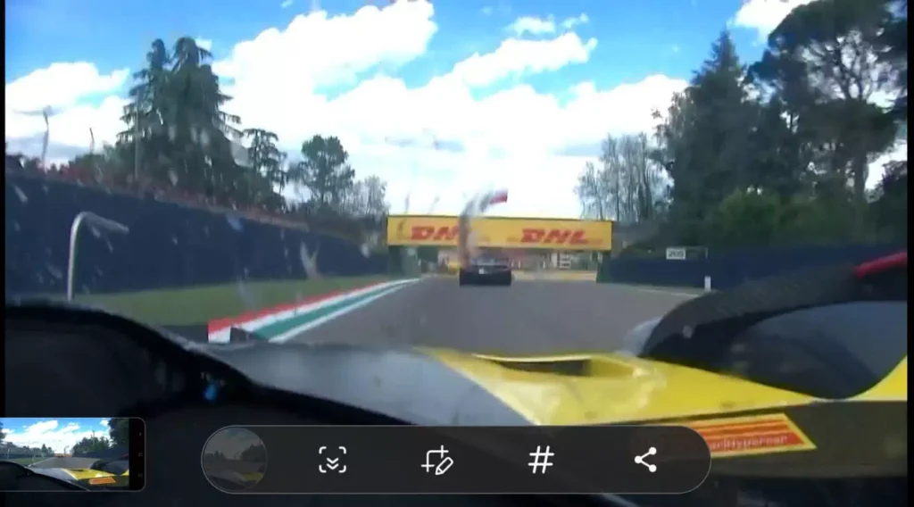 Kolega Miłosz, były mieszkaniec Imoli, który towarzyszył nam w dniu wyścigu i którego gorąco pozdrawiamy, zrobił screena z relacji live. Zdjęcie poniżej pokazuje widok z kamery pokładowej bolidu Roberta…