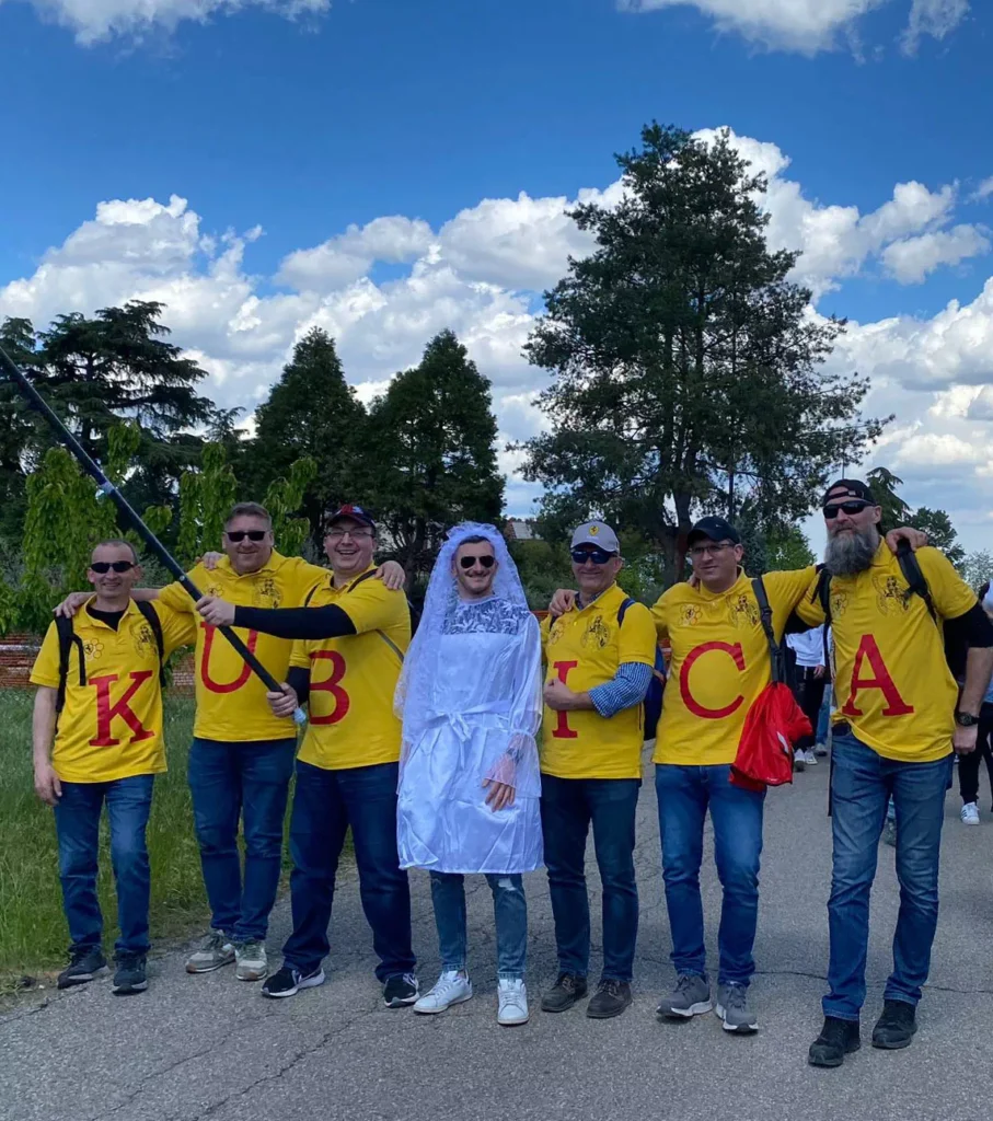 Wracając do kibicowania, a może inaczej mówiąc, Kubicowania. Od dawna wiadomo, że oprócz polskich kibiców Robert ma wielu zwolenników we Włoszech. Na Imoli czuliśmy to szczególnie mocno. Ilość włoskich fanów Roberta napawa dumą a ich reakcje na nasz widok były często wyrazem ogromnej radości. Zrobiono nam setki zdjęć. Co chwilę ustawialiśmy się w szyku, tworząc napis KUBICA. Robimy to już tak sprawnie, że cała operacja zajmuje kilka sekund ;):